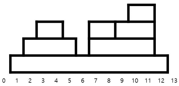여러개의 블럭이 쌓아서 만든 요새에 대하여, 각 위치별로 폭격을 가할 때 파괴되는 블럭의 개수를 찾는 문제이다.