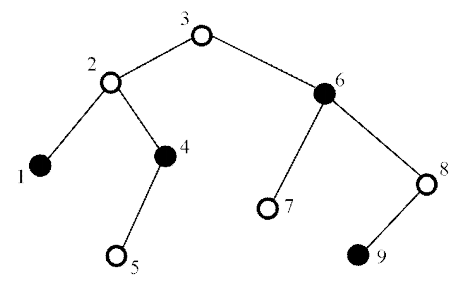 $D(i,1,0)=$ true ($i$번 노드가 흰색) 또는 $D(i,1,1)=$ true ($i$번 노드가 검은색) $\hspace{2em}$ (Base Case)